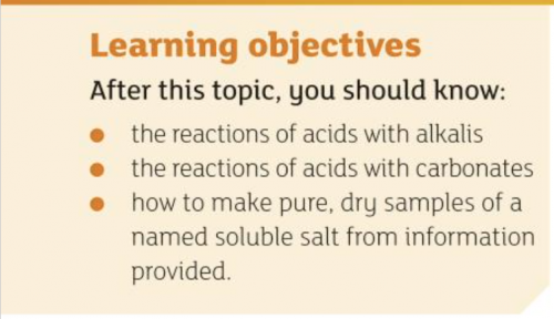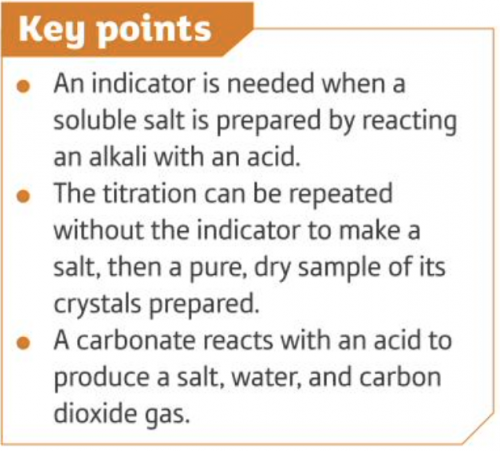 - Describe how to make a dry sample of a salt from reacting a metal carbonate or an alkali with a dilute acid.